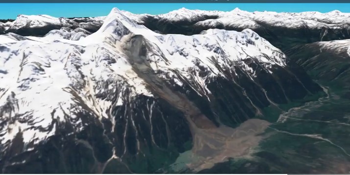 | De verwoestende lawine was het gevolg van het afbreken van een groot stuk van de nabijgelegen Birch gletsjer.
