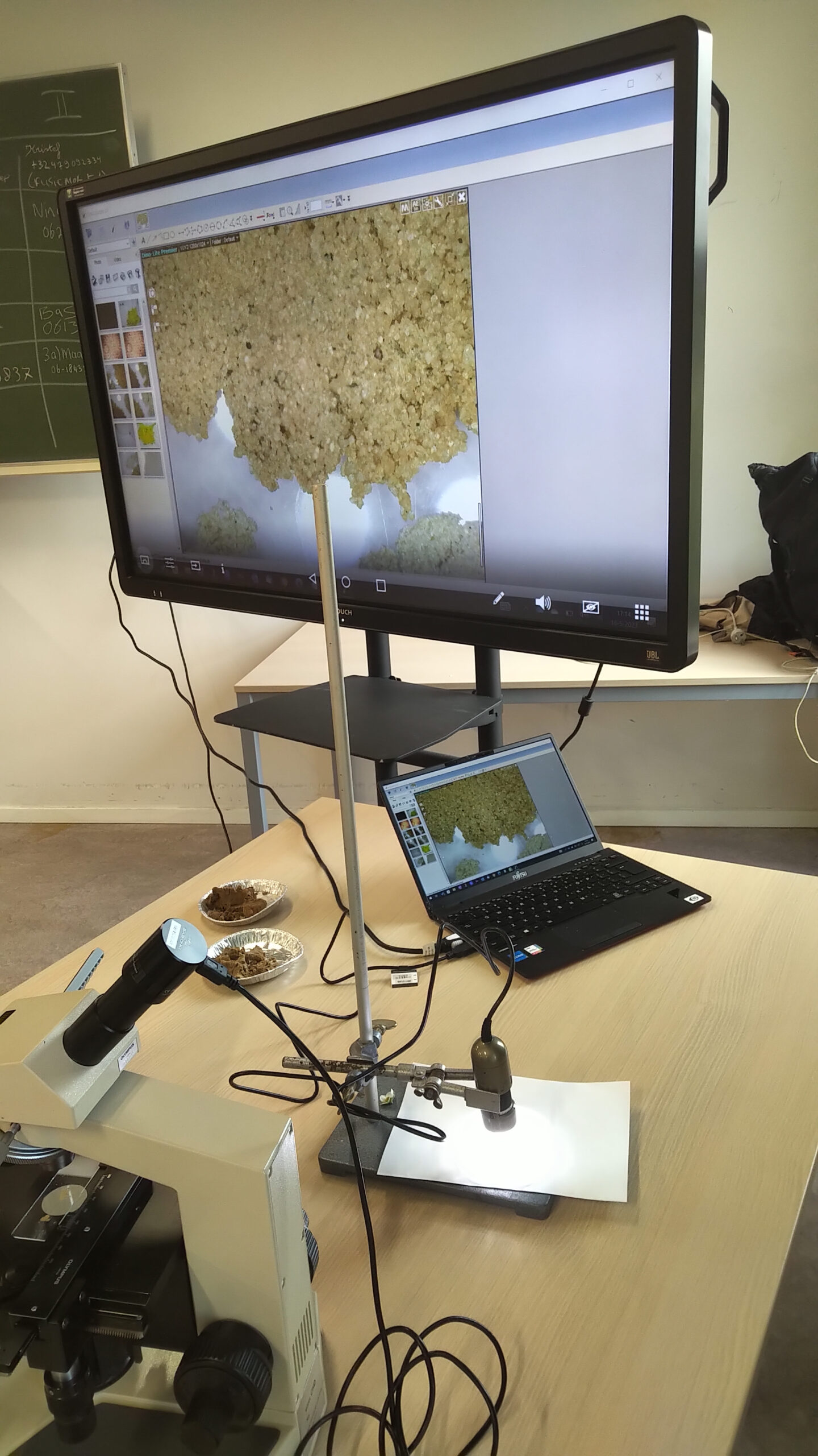 Voor het bekijken vergelijken van bijvoorbeeld Dekzand met Klei of Löss is deze tool supergoed. Dat liet ik vorig jaar zien in Orvelte met zandmonsters die we meenamen uit het veld. Maar ook vulkanisch as , tufsteen of gewoon oude blauwe zeeklei kun je er prima onderleggen