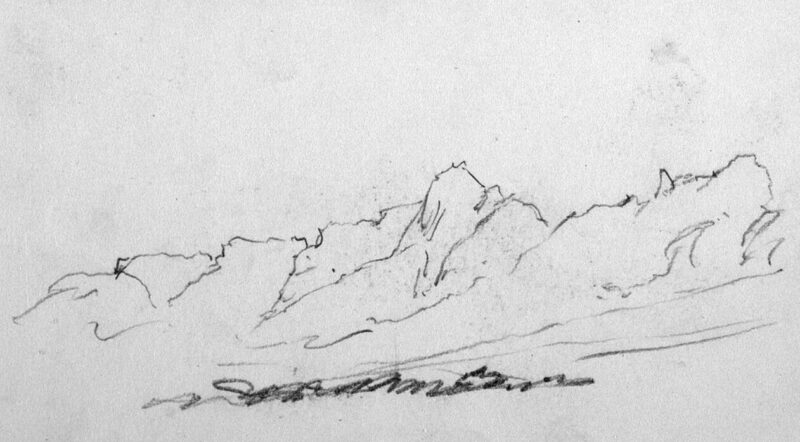 Maar wat doe je in het veld als vrij tekenen niet je sterkste kant is ? Dan trek je het toch over !! Zoals je hier rechts in de tweet ziet tekent Dave Selby het landschap over met een plexiglas plaatje en werkt het dan uit. Het mooie vind ik dat je evt ook annotaties kunt opnemen in je schets. |